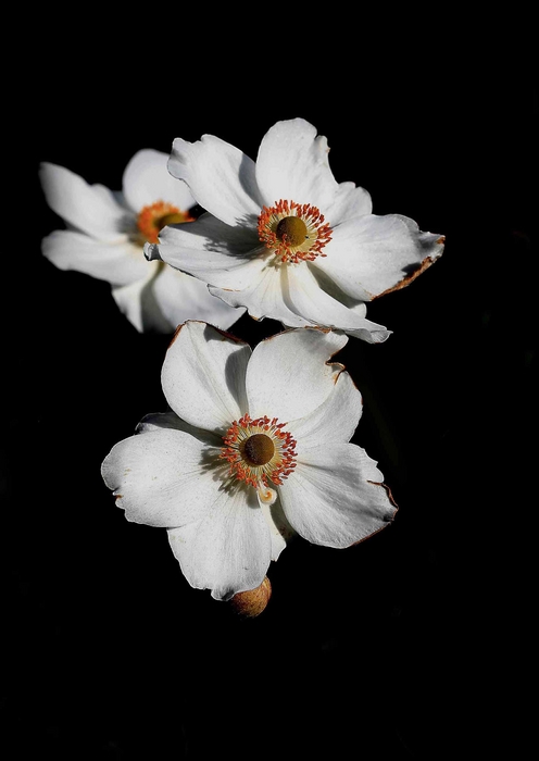Une photo assez raffinée avec ces fleurs blanches sur fond noir, j'aime assez. La netteté est au rendez vous, la lumière bien gérée.