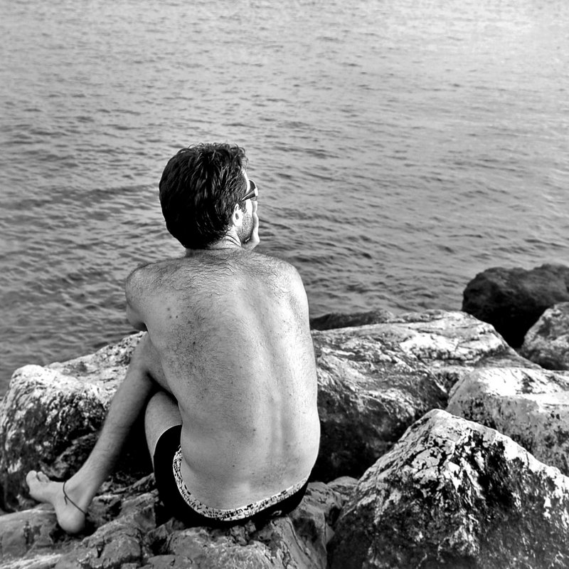 j'aime l attitude de cet homme, un côté paisible, je pense que j aurai aimé voir un bout d 'horizon ou l 'endroit ou son regard se fixe