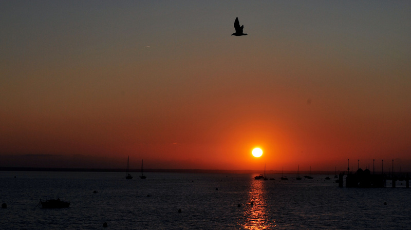 tres joli coucher de soleil, je suis adelo pour l'oiseau!