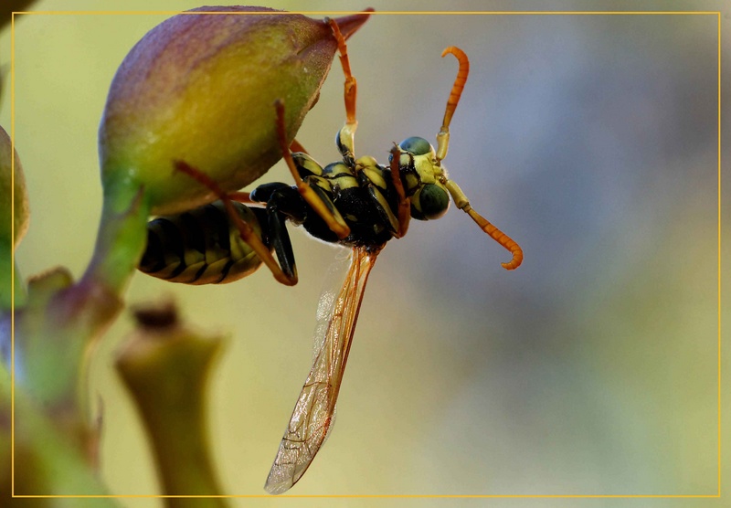 Très belle macro. J'aime bien le côté étonné de la guêpe.