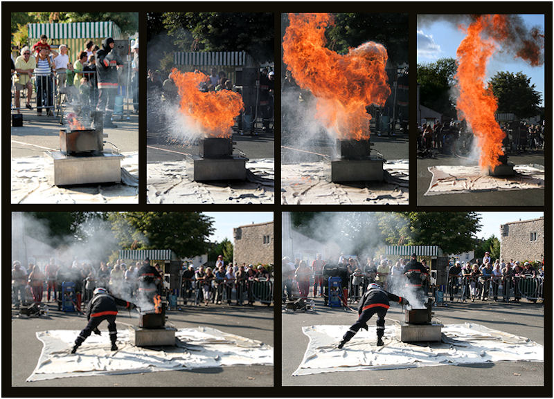 Cette série a été prise lors d'une démonstration des pompiers : ceci pour montrer ce qu'il ne faut jamais faire, et ce qu'il faut faire en cas de feu d'huile de friteuse. Sur la photo 1, on voit l'huile s'enflammer. Il ne faut jamais verser d'eau dans l'huile en feu pour l'éteindre. Dans cette démonstration, les pompiers ont versé l'équivalent d'un petit verre d'eau dans la friteuse. Résultat : photos 2,3 et 4 (la flamme est montée jusqu'à 5-6 mètres, imaginez ça dans un appartement ou une maison!). Pour éteindre le feu, il "suffit" de mettre un couvercle sur la friteuse pour étouffer le feu. La qualité technique du montage et des photos n'est pas au top, mais je voulais juste faire connaître cette information, et pour ceux qui le savaient, montrer le résultat impressionnant de l'eau dans l'huile.