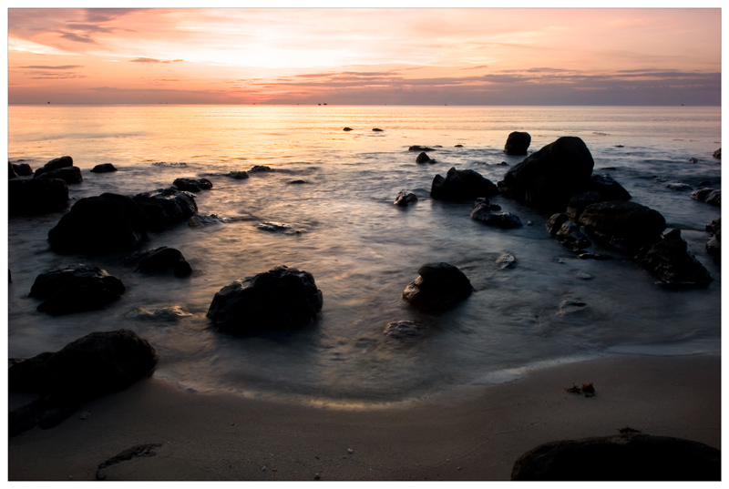 j'aime bien le rendu de l'eau, la lumière sur l'horizon, et ces deux petits point au centre de l'image qui attirent le regard