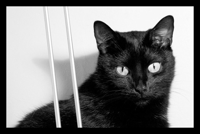 A la place de ces deux barres métalliques, j'aurai aimé voir se dessiner un peu plus l'ombre de ce félin photogénique. Cadrage adéquat, car je suppose que ce métal est là pour "meubler" ce coin vide de l'image