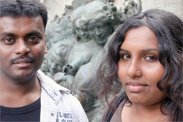 Mon titre est mal choisi, en réalité je voulais faire le portrait de ce couple d'étranger à Paris lequel, venait de se désaltérer à la fontaine.