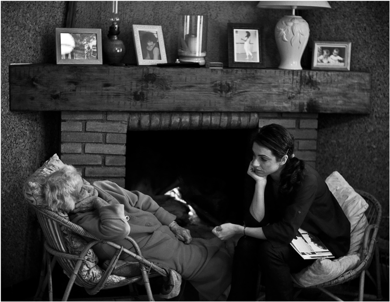Sous la bienveillante galerie de disparus et de temps révolus, cet instant après la vaisselle de midi, ma fille et ma belle-mère aujourd'hui au Leica 50 mm 5.6 1/ 125 iso 320