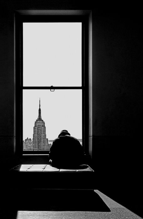 Une photo magnifique, j'aime tout dans ce noir et blanc, la lumière et les jeux d'ombres sont parfaits, la pause du personnage appelle à la contemplation et la méditation, le cadrage impeccable, les lignes pures, le tout se perd dans le fond noir de CP, je suis admirative !