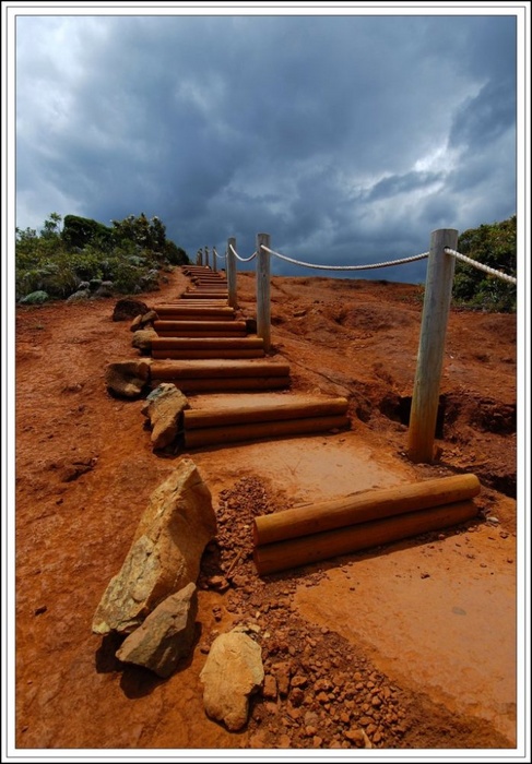 Jolie prise de vue, avec de belles couleurs,le truc qui me gène un peu ce sont ces arbustes qui je trouve emprisonne un peu l'échappatoire des escaliers...j'ai fait une tentative de carré que je glisse sans prétention