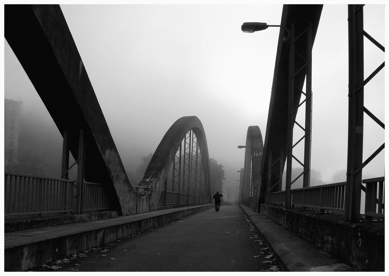 Au contraire de Imagemo, je garderais le bâtiment qui laisse une idée de l'endroit et en rajoute au côté.. pas bien gai de l'environnement, comme ce pont.. Enfin, pour moi en tout cas..
