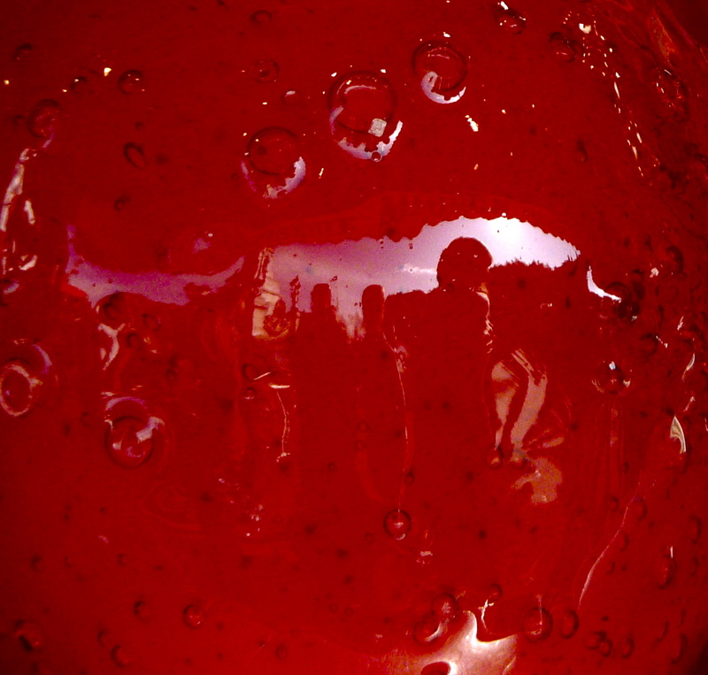 Moi j'adore ! ce rouge, cette pomme d'amour qui donne envie d'être croquée, et ce joli reflet de scène de vie...