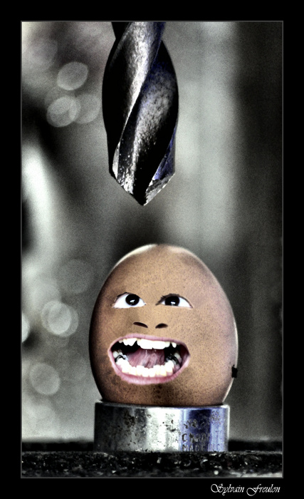C'est bien fait, j'aime bien le traitement. Et l'idée est excellente. Mais je trouve que le "sens" de la bouche ne va pas avec celui des yeux. Ça me fait un peu peur ce que je m'apprête à dire (disons que ça fait un peu surréaliste) mais bon... Allons-y: La bouche a l'air de regarder à droite (de la photo), et les yeux plutôt à gauche. Ils ne sont pas vraiment dirigés pareil, et du coup ça fait bizarre.