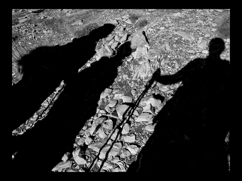 En fait , c'est un auto portrait en randonnée pédestre, je suis à droite , la scène se situe en haute montagne lors d'une petite pause photo, il fait froid et le soleil levant nous réchauffe le dos...