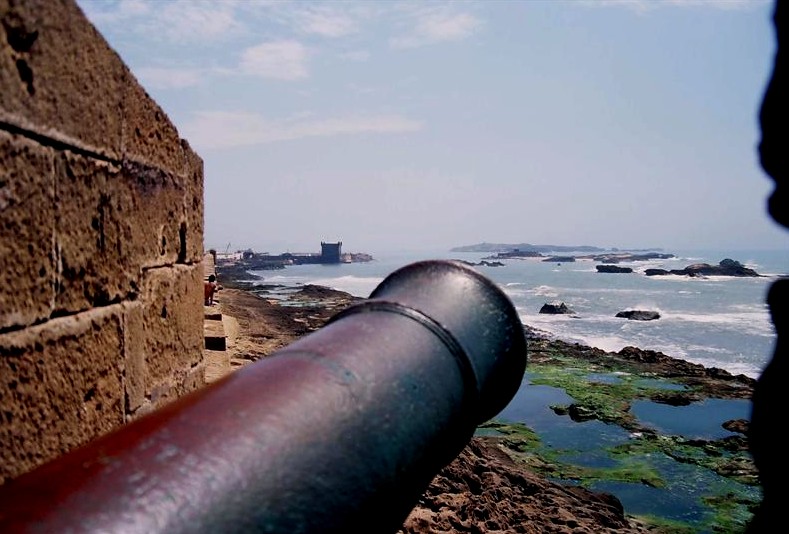 J'aime aussi beaucoup celle-ci. Le machin noi à droite me semble assez important puisqu'il délimite le créneau dans lequel se trouve le canon. Je lis ça comme une opposition entre d'une part le canon et sa force, sa grande taille, "enfermé" en quelque sorte dans ce créneau, et d'autre part la relative faiblesse et petitesse de l'individu, mais "libre" sur le bord de la plage et de son immensité.