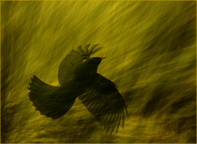 et avec la tete de l'oiseau plus nette hors de l'effet un peu comme s'il sortait la tete de la tourmente?