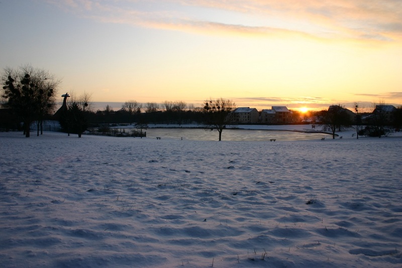 Je pense qu'ici tu aurais eu à gagner en t'approchant de ce petit étang dont la surface semble gelée, en jouant peut-être avec les reflets du soleil sur la glace...