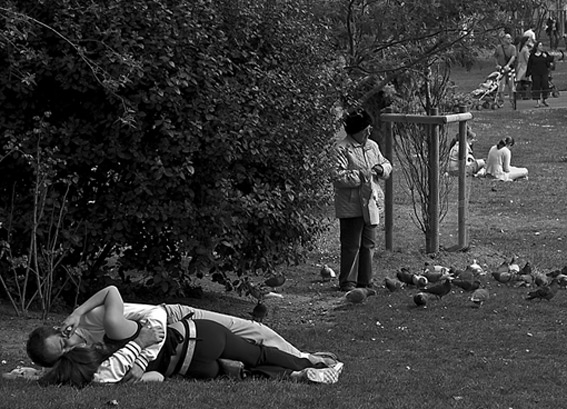 tres mignone ta photo, joli cadrage, en nb, les 3 plans st entre allongés assis debout, elle me parle bcp