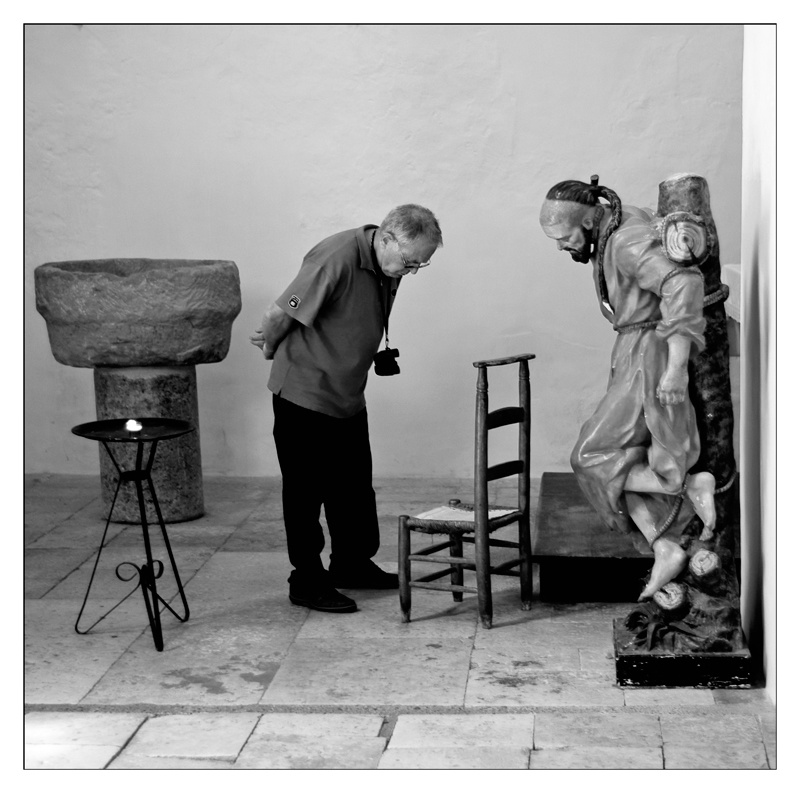Dubitatif le monsieur ! J'aime bien, la scène et le N&B.