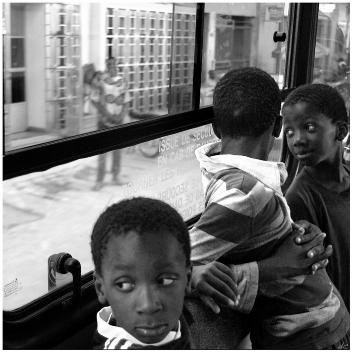 j'aime bien cet instantané, mais pour que ce soit une image à la hauteur de ce que tu nous as déjà montré, à mon gout, le gamin du premier plan est de trop. j'aurais aimé ne garder que les 2 tournés vers l'extérieur et le personnage en bokeh.