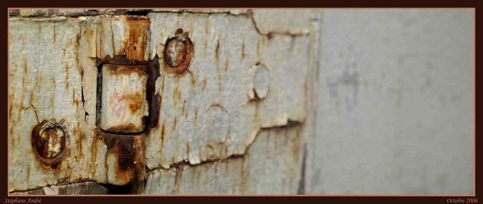 La rouille et la pierre, bonne idée de matière. Mais 1/3 de ta photo à droite est absolument vide, et ca manque un peu de netteté. Amitiés.
