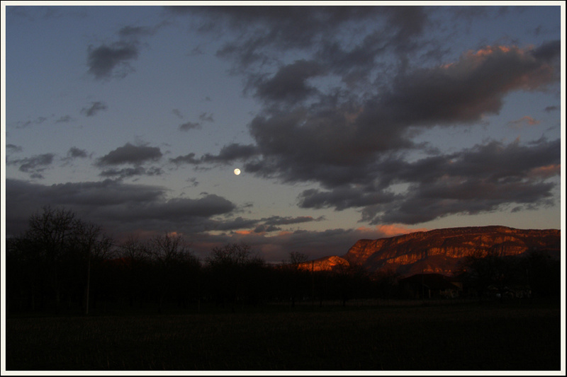 Un bien beau coucher de soleil, avec ce qu'il faut de nuages lourds pour éviter la carte postale... sans le cadre bien sûr...