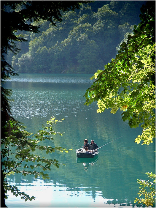 Joli lumière mais je trouve que ton cadrage ne met pas assez ton sujet en valeur : l'arrière plan sombre au-delà de l'eau est trop présent et écrase la barque, déjà prise entre les feuillages...