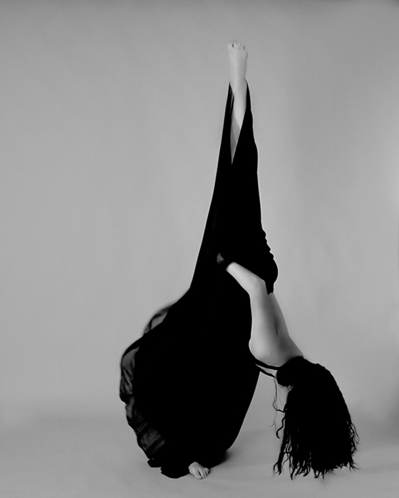 Quelle photo! du grand art . Tout y est depuis l'idée jusqu'a la réalisation, mouvement, attitude originales par l'ajout de la robe, beaux n&b, gris dosés. Du grand Shalimar, je m'incline Madame