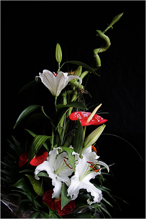 Sur la 3 j'aurai cadré plus serré sur les lys du bas ; pour moi d'avoir la fleur rouge ne se justifie pas réellement.