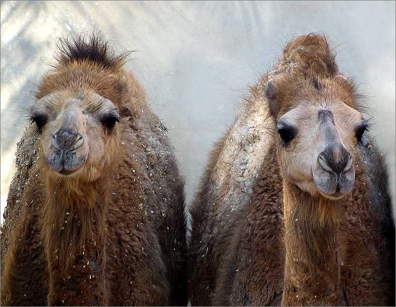 Dommage que la netteté ne soit pas du même niveau sur les deux têtes. J'aime bien ce cadrage serré qui met un peu de distance entre les deux dromaludaires.