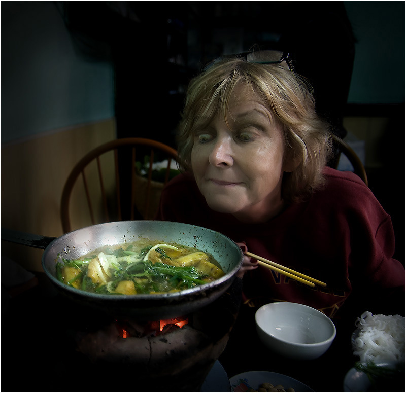 le plat a l'air presque aussi sympa que cette image que l'expression forcée sert bien
