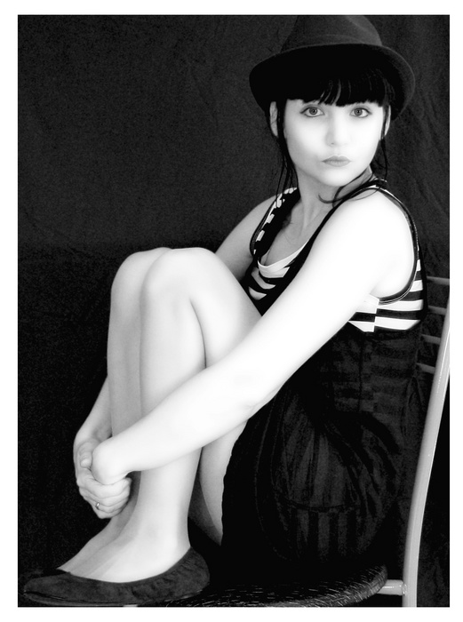 J'aime bien la pose de ton modèle qui lui fait occuper tout le cadre mais pas trop le traitement très dur qui ne convient pas je trouve ni à son expression plutôt neutre ni à sa tenue ni à son âge...