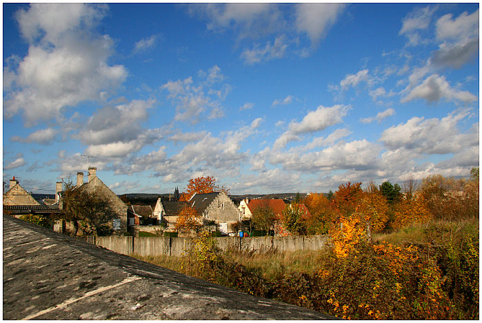 Un très chouette cadrage par-dessus le mur pour un terrain vague aéré et coloré et de jolies cheminées qui fument bien!