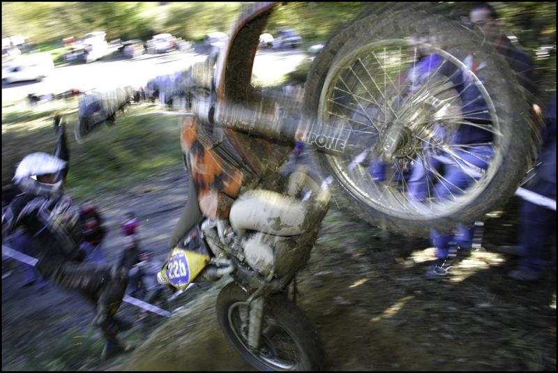Magnifique. La roue avant tourne encore, l'engin oscille sérieusement, et le cavalier fait ce qu'il peut...