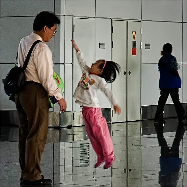 Bien marrante celle-ci. Un peu bord cadre le papa mais c'est une belle photo de vie.