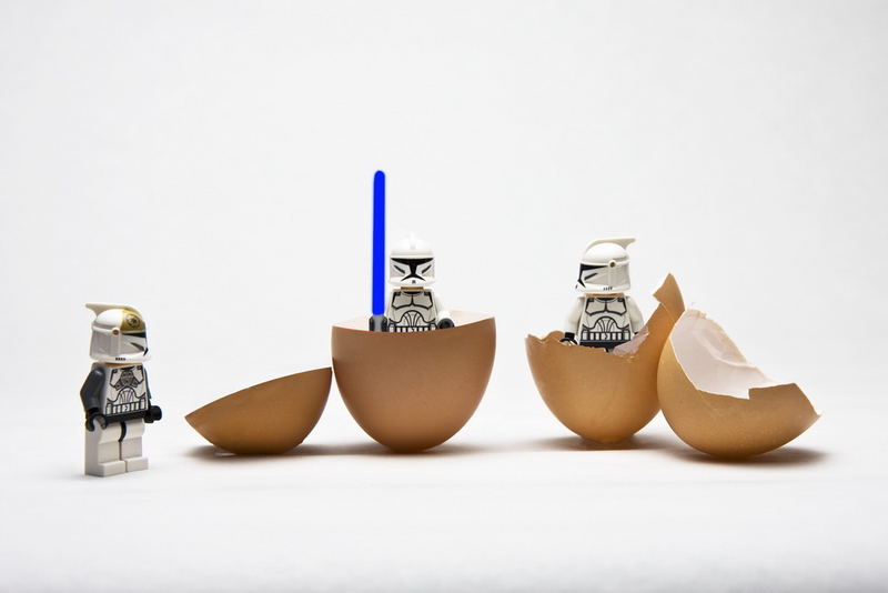 Belle compo.. et recherche.. Jusqu'au détail de la découpe de l'oeuf, nette (au sabre lazer ?) et originelle ( )