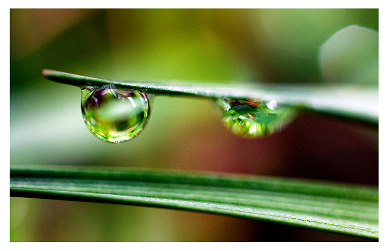Jolis reflets sur les gouttes avec une zone de netteté inversée sur chacune. (je pense que c'est voulu?) qui justifie peut-être le titre.