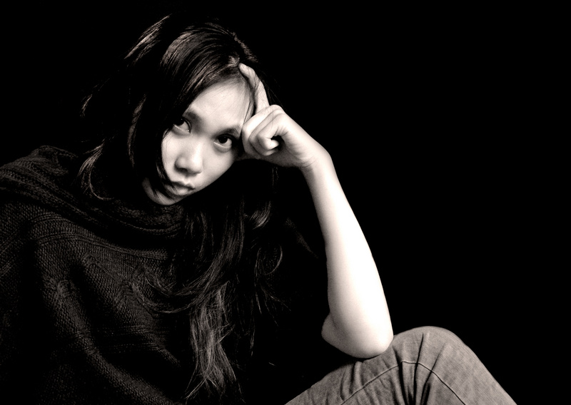 Donc, j'aime ici, l'expression et pose de la modèle et sa grâce, le détail dans les matières : pull et jean, l'éclairage..