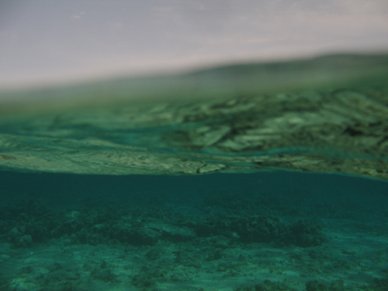 Sous l'eau, au dessus.
