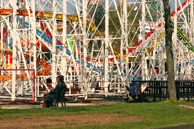 Voici mon idée : j'aurais cadré plus serré sur la personnage face à cet enchevêtrement de tôles colorées. Pour renforcer l'idée (si je l'ai bien comprise)..