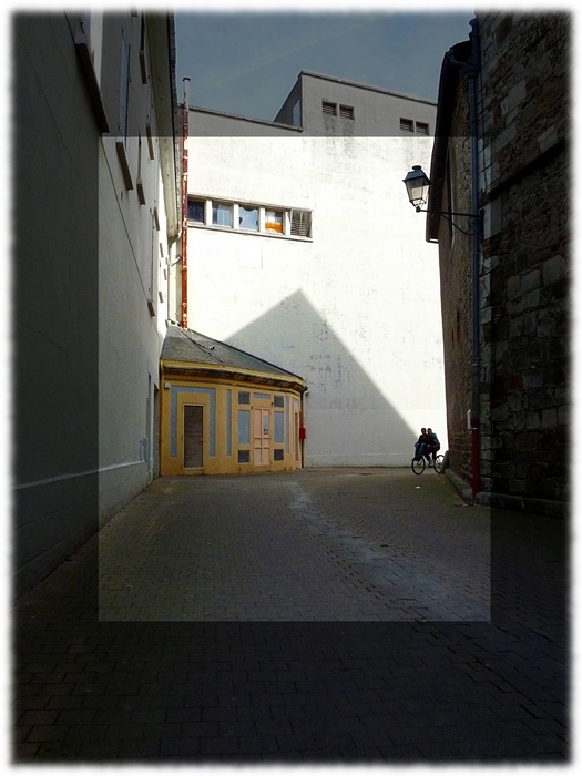 Perso, j'aurais cadré plus serré pour exploiter l'ombre qui dirige l'oeil sur le cycliste et son passager qui sont, pour moi, l'intérêt de cette photo.