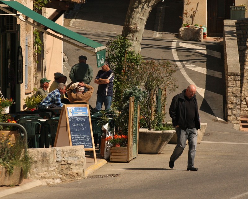 Et ton interprétation est peut-être trop personnelle ou trop poussée par rapport à ce qu'évoque vraiment la scène... La notion de combat/vaincu en particulier me semble totalement absente ici; je vois juste un groupe de gars qui discute sur une terrasse et un tout seul qui rentre chez lui en tirant un peu la gueule (on peut en effet s'imaginer des tas de trucs, mais "Le départ du vaincu" me semble un peu tiré par les cheveux)