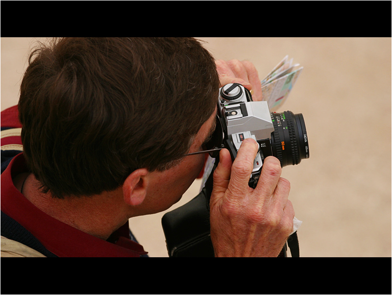 Eh oui ! Le bon temps ! Maintenant, on a presque déjà le gps intégré au boîtier... Je ne reconnais pas la marque de son appareil mais je pense que l'objectif est un 50 f1.8...