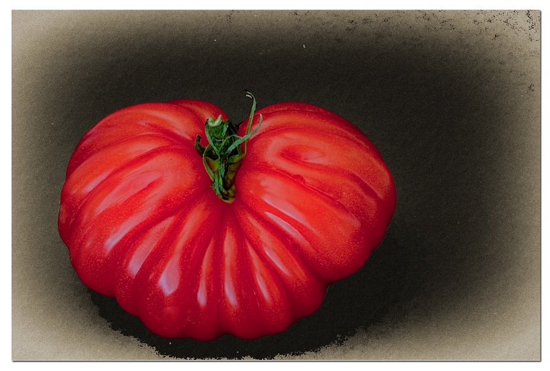 J'ai ramené cette tomate " coeur de boeuf" cet après-midi et j'ai pas pu m'empècher de la prendre en photo tellement elle était belle!!!