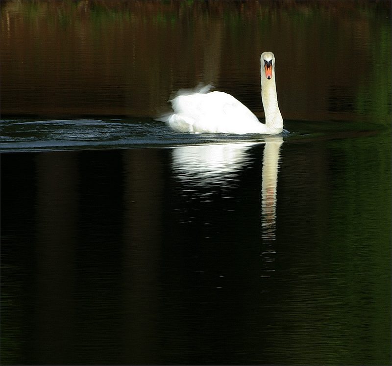 jolie atmosphère paisible, belle attitude du cygne, un petit bémol pour le popotin un peu nerveux