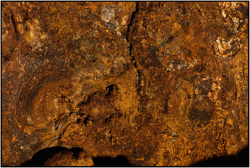 C'est un improbable mariage de rouille sur un support caoutchouté, en fait un pot de peinture totalement durçi dont le métal s'est désagrégé en rouille trouvé dans une décharge de bois flotté.