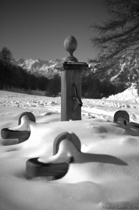 Beau sujet et beau n&b mais je trouve que le centrage de la fontaine n'apporte rien à la compo...