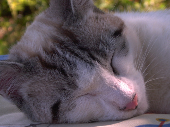 Je suis d'accord avec Cloz. J'aime bien aussi ce joli chat en pleine sieste, mais j'aurais laissé les oreilles en entier.