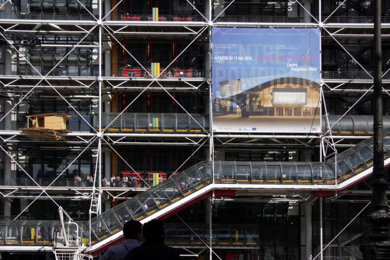 Elles me plaisent beaucoup ces cabanes de bois accrochées à Beaubourg.