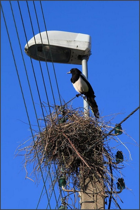 Un peu brouillon au niveau compo pour moi : tout se chevauche (pie/lampadaire ; nid/fils electriques; fils/lampadaire), et la pdc ne permet pas d'isoler un élement pour le mettre en valeur.