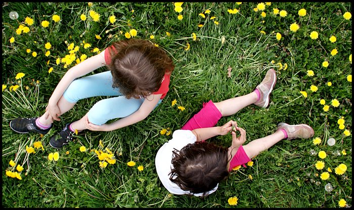 Superbe point de vue avec une photo qui me plait beaucoup, les pissenlits ajoutent un coté bucolique et j'aime la position opposée des 2 enfant, très joli travail tu étais ou pour la pdv?