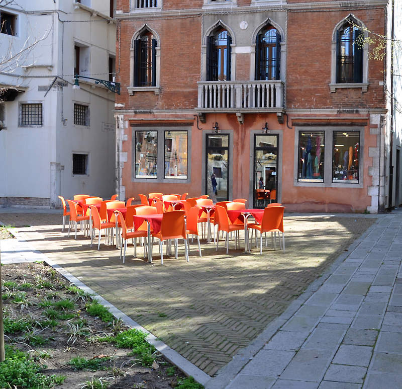 Bon sujet - graphique et contrasté - mais mal mis en valeur par un cadrage trop large... Je recouperais à gauche juste derrière la 1ère chaise et à droite juste à la pointe du triangle au sil qui apporte une vraie dynamique à la compo et qu'il faut donc garder en entier...