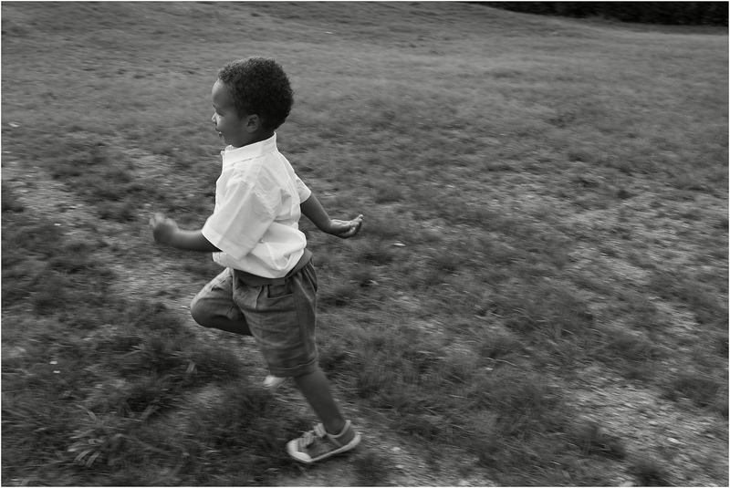 quitte à cadrer comme tu l'as fait j'aurai rapproché le petit garçon du cadre pour qu'il aille encore plus vite et rattrapé ce qui lui file entre les jambes... et je crois aussi que j'aurai enlevé la partie en haut qui donne peut être du relief mais je ne lui trouve pas d'importance